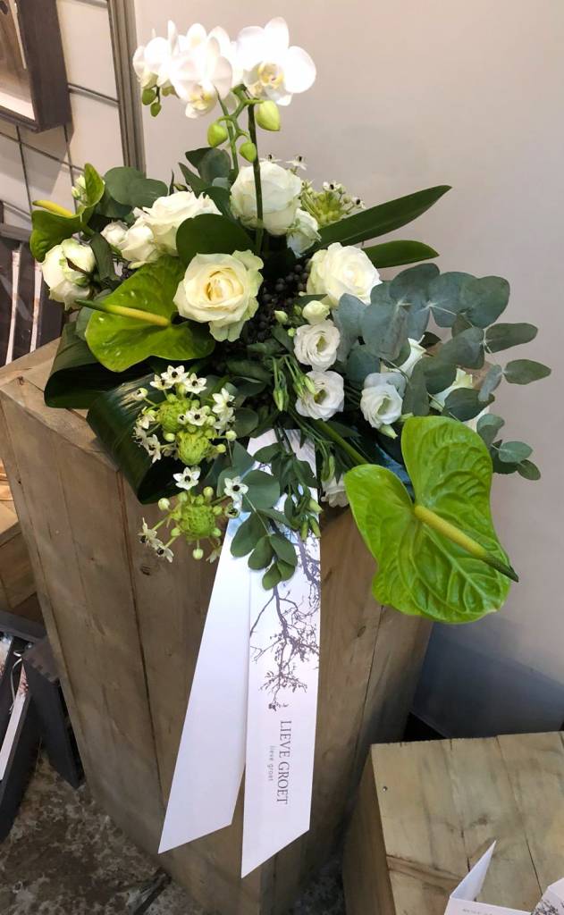 Deze big ribbon is bijzonder geschikt voor aan een groter bloemstuk. Het formaat van deze ribbon in relatie tot het grotere bloemstuk zorgt voor balans en een prachtig geheel. Dit formaat papieren ribbon is een mooi en veel gebruikt alternatief voor het duurdere zijden lint. De papieren linten zijn mooi vormgegeven en schenken met weinig woorden precies de juiste aandacht.
