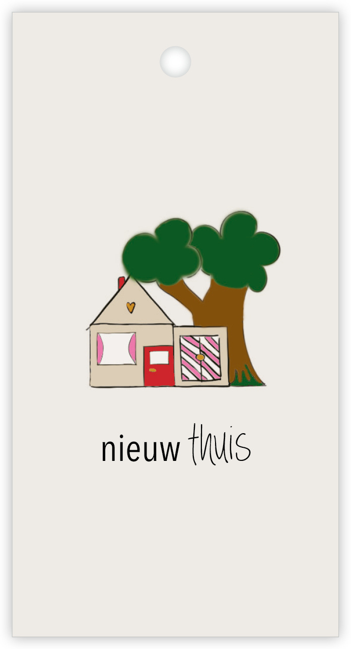 Met de tekst “Nieuw thuis” is dit cadeaukaartje ideaal om iemand te feliciteren met een verhuizing of nieuw begin.
