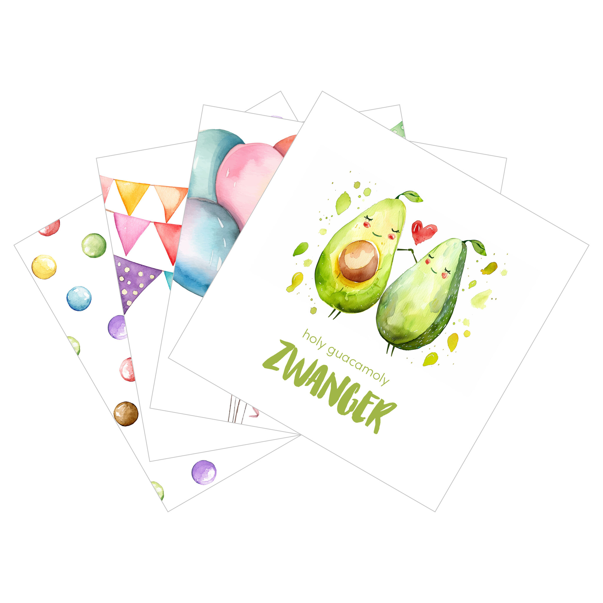 Het pakket bestaat uit 42 verschillende motieven à 6 stuks (excl. display). De wenskaarten zijn ook los verkrijgbaar. Leuk te presenteren in onze 42-vaks vloerdisplay wenskaarten vierkant.
