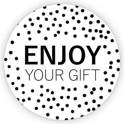 Rond etiket met de tekst enjoy your gift. De etiketten hebben een diameter van 65 mm en zijn permanent hechtend. Rolletje voorzien van 200 etiketten.