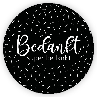 Rond etiket met de tekst super bedankt. De etiketten hebben een diameter van 65 mm en zijn permanent hechtend. Rolletje voorzien van 200 etiketten.