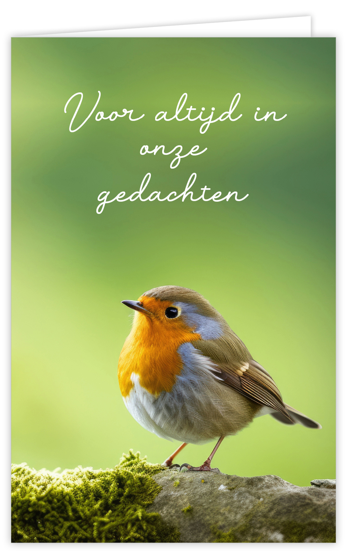 Mocht het ribbon formaat aan een groter bloemstuk te klassiek gevonden worden, kan gekozen worden voor deze grotere kaart. Een groter bloemstuk wordt vaak gegeven door meerdere personen en op dit formaat kunnen al hun namen worden opgenomen. Zelfs dan is er nog voldoende ruimte voor een warme, laatste groet.
