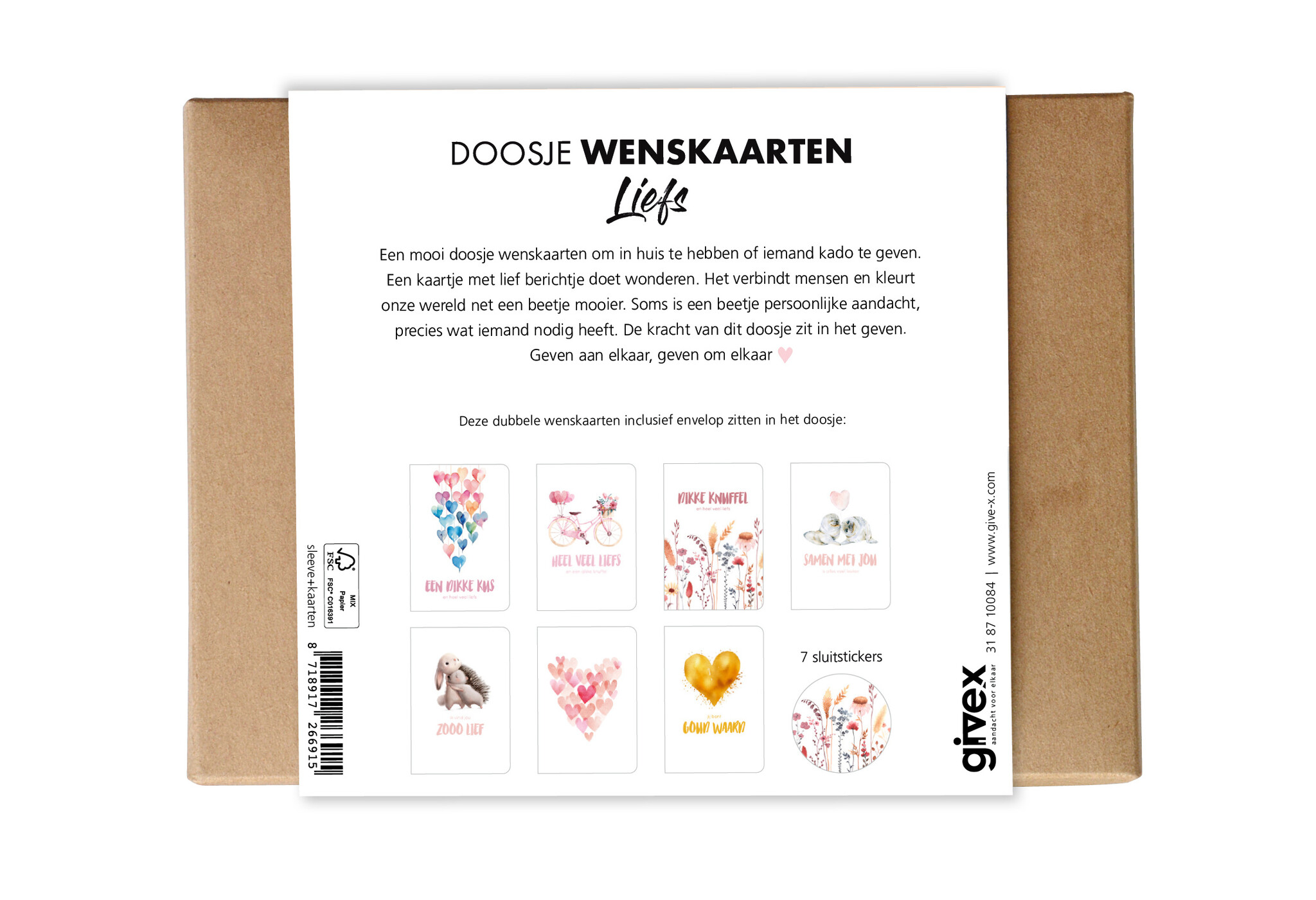 Kadodoosje met 7 wenskaarten incl. kraft envelop en sluitstickers