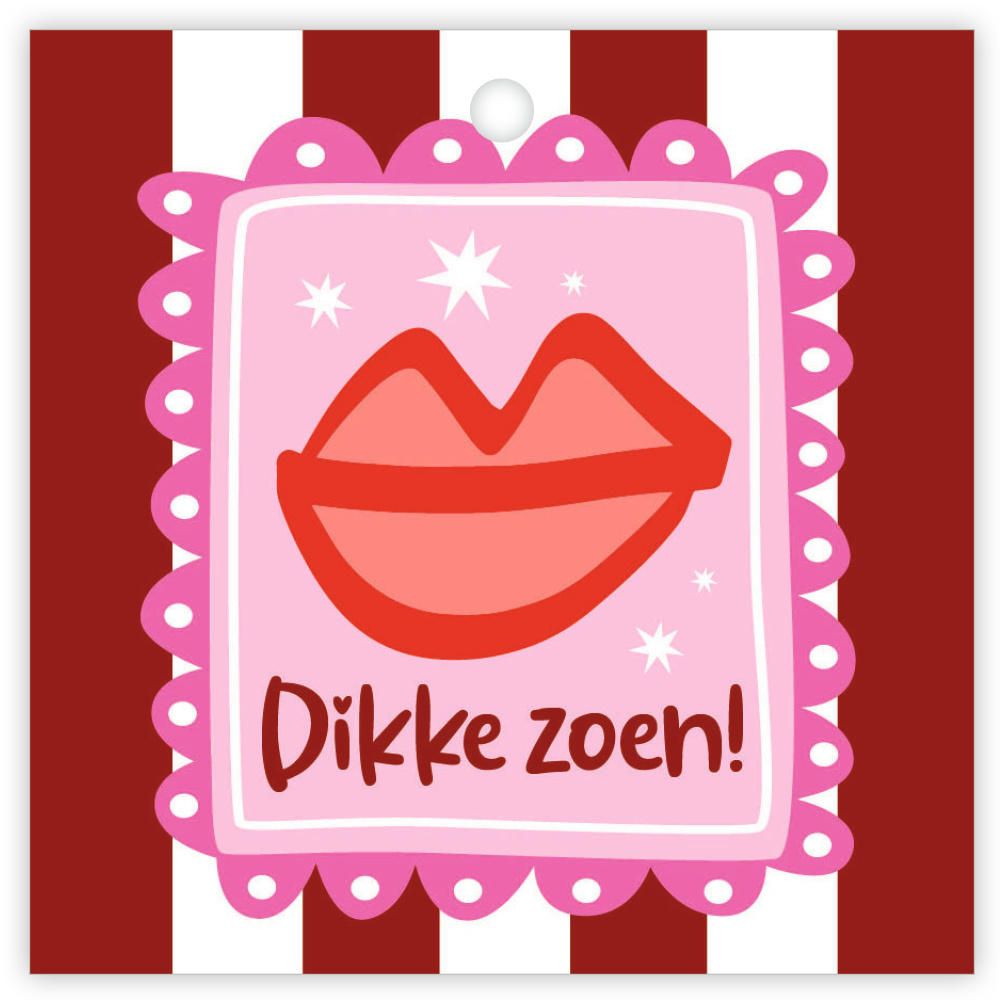 Een vrolijk algemeen kaartje met de tekst "Dikke zoen!". Dit kaartje past makkelijk bij meerdere gelegenheden.