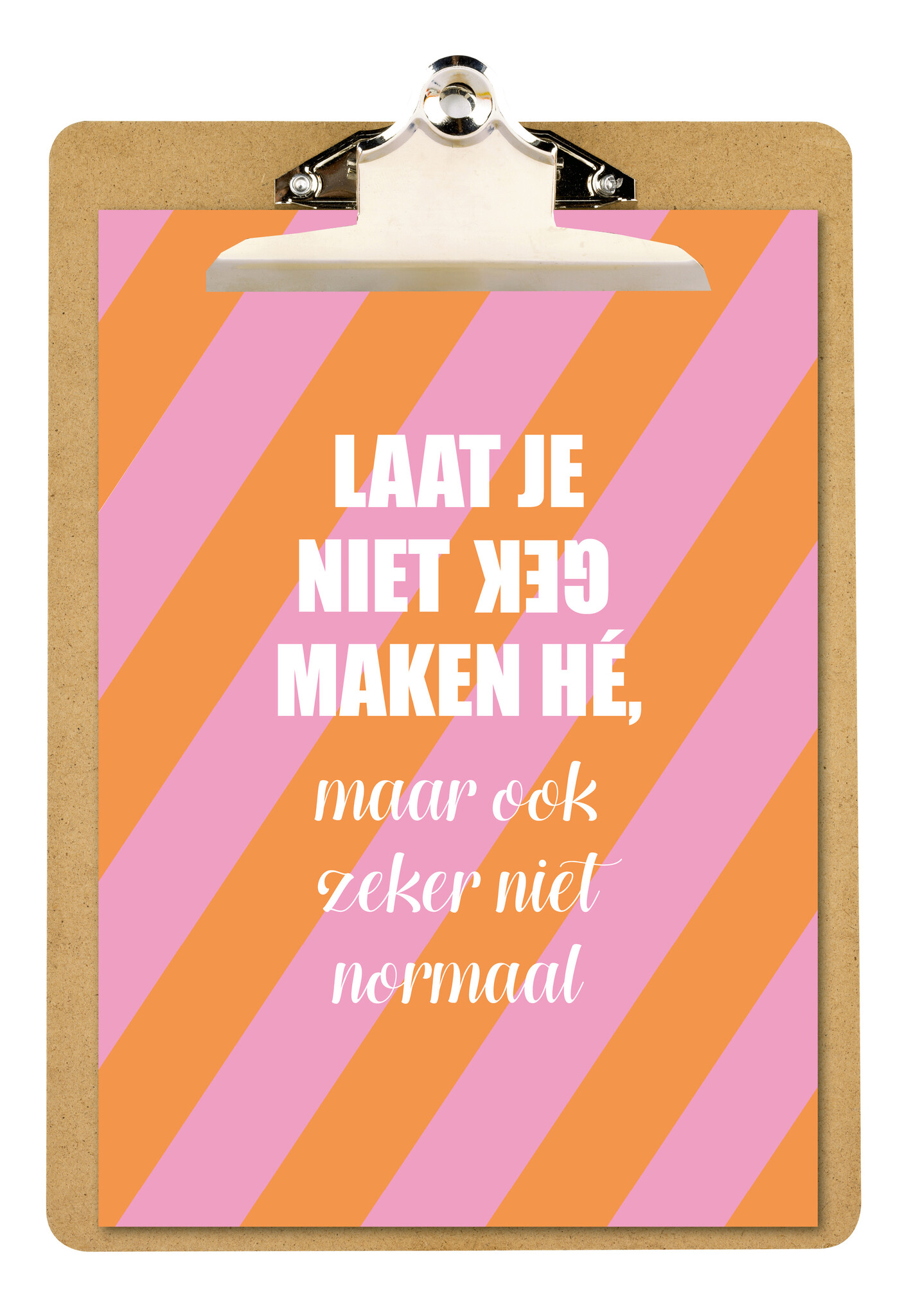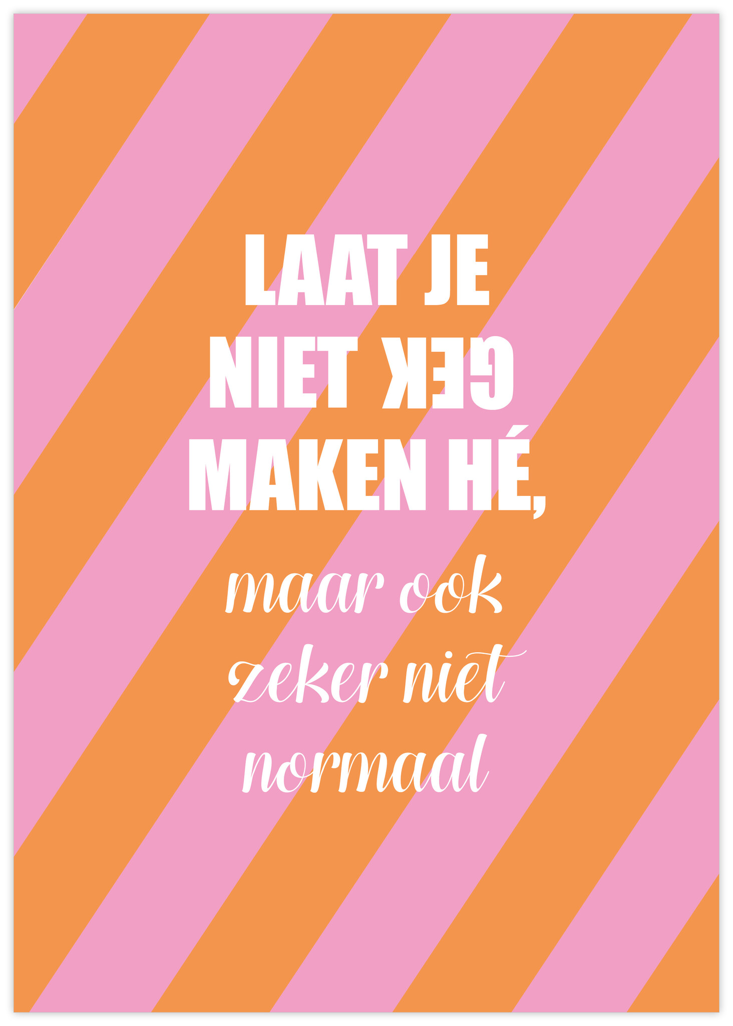 A4-poster met de tekst Laat je niet gek maken hé, maar ook zeker niet normaal, speels en eigenzinnig.