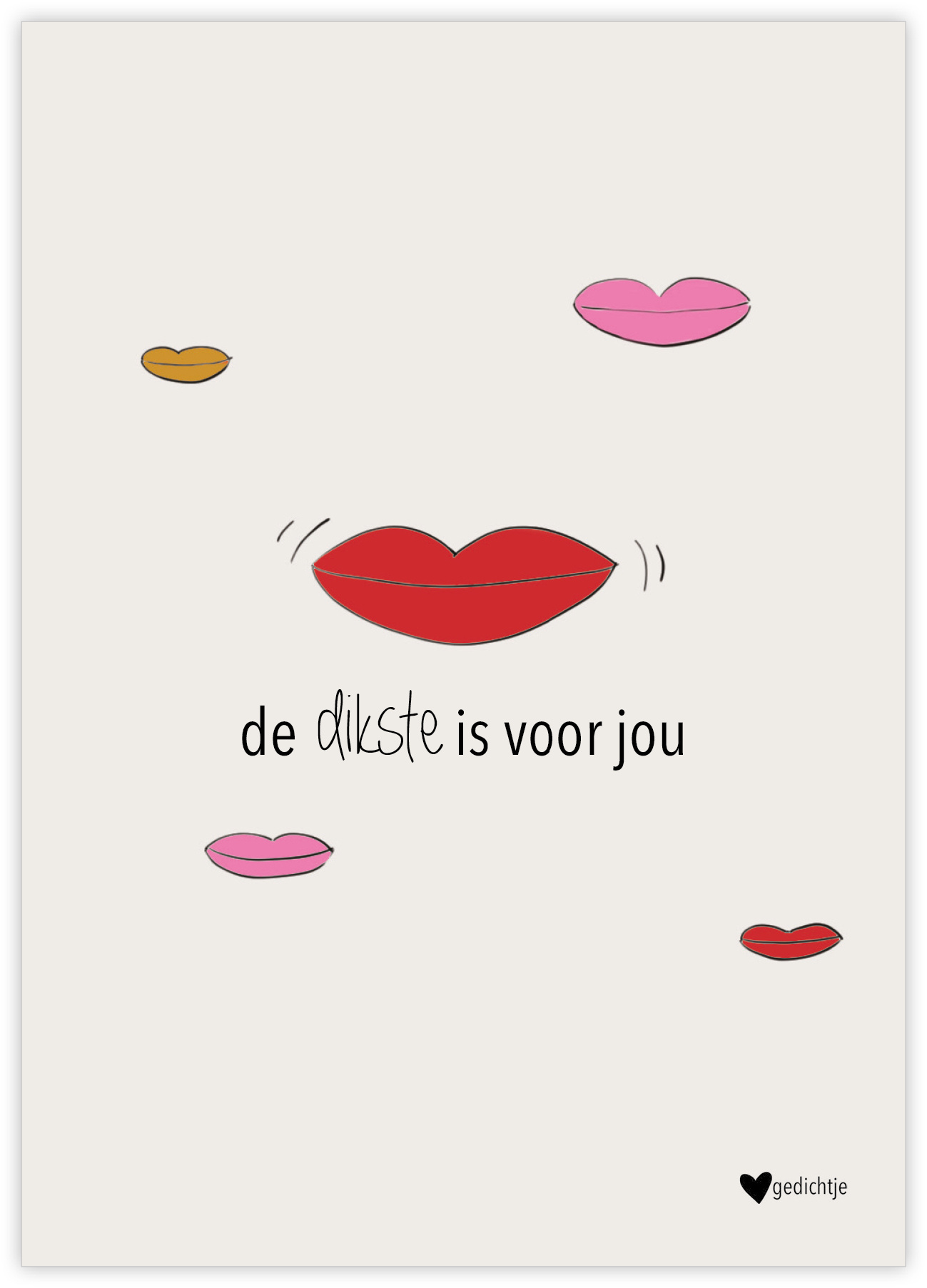 Met de tekst “De dikste is voor jou” is deze kaart een liefdevolle en speelse manier om iemand te laten weten dat je aan hem of haar denkt.