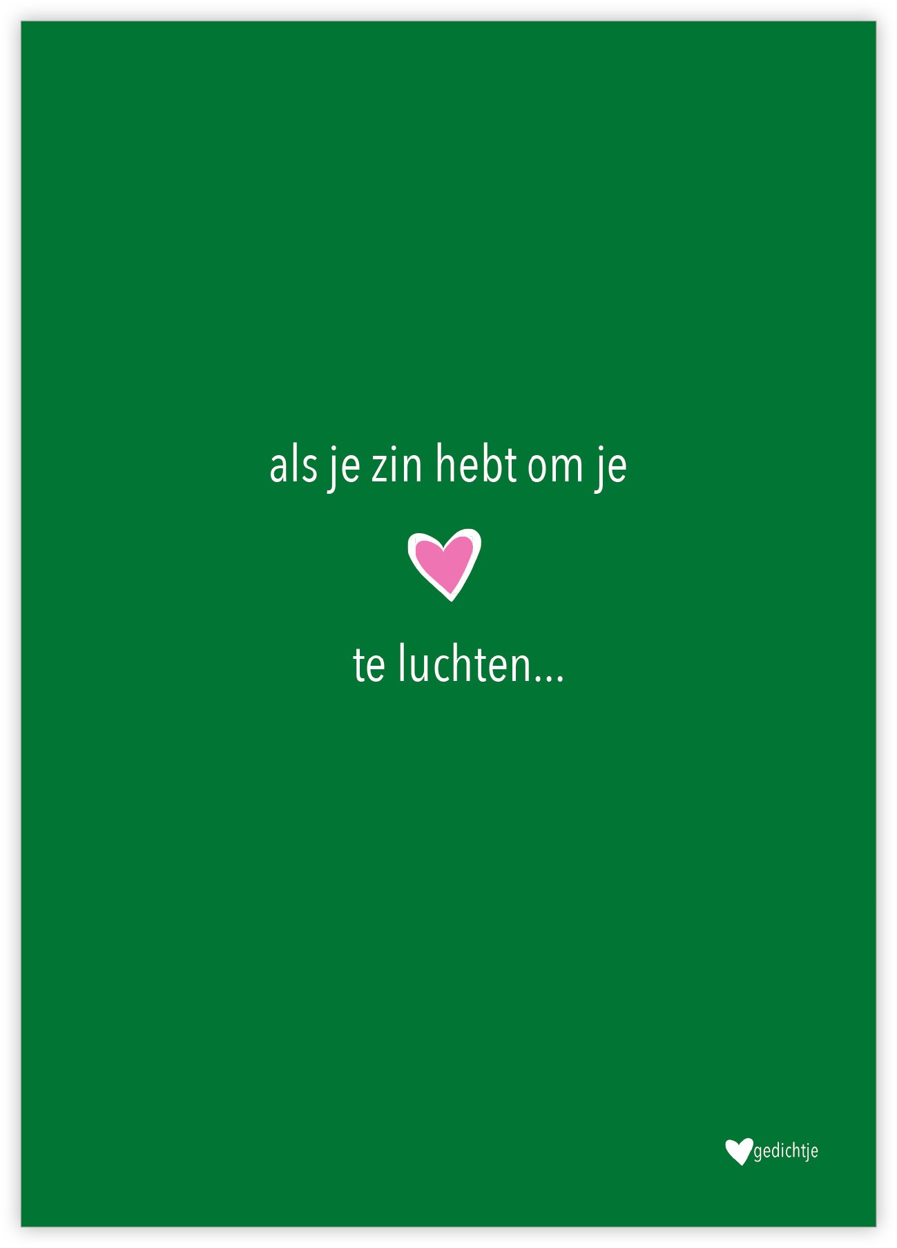 Breng kleur in elk moment met de serie Knipoog van Hartgedichtje! Bij Hartgedichtje draait alles om de boodschap 'kleine, lieve gedichtjes die recht uit het hart komen'. Nu voegen we daar een vrolijke knipoog aan toe! De serie Knipoog combineert mooie woorden met een frisse, kleurrijke achtergrond. De perfecte balans tussen een persoonlijke boodschap en een speelse uitstraling!