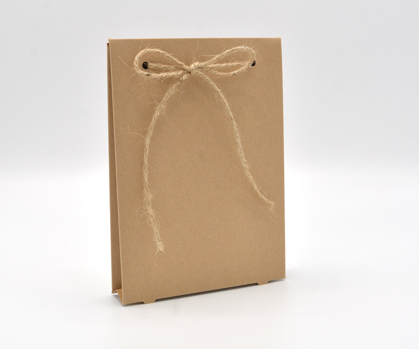 Een ideale kadoverpakking in echt kraft voor kadobonnen, kadokaarten en andere leuke platte kadootjes. De verpakking is makkelijk in elkaar te zetten en het bijgeleverde sisal touw maakt de verpakking helemaal af. Doordat de zijkanten niet geplakt zijn, kun je de verpakking al in elkaar zetten en pas later de inhoud erin stoppen. Wil je helemaal de blits maken, dan kun je de blanco verpakking voorzien van onze leuke etiketten.