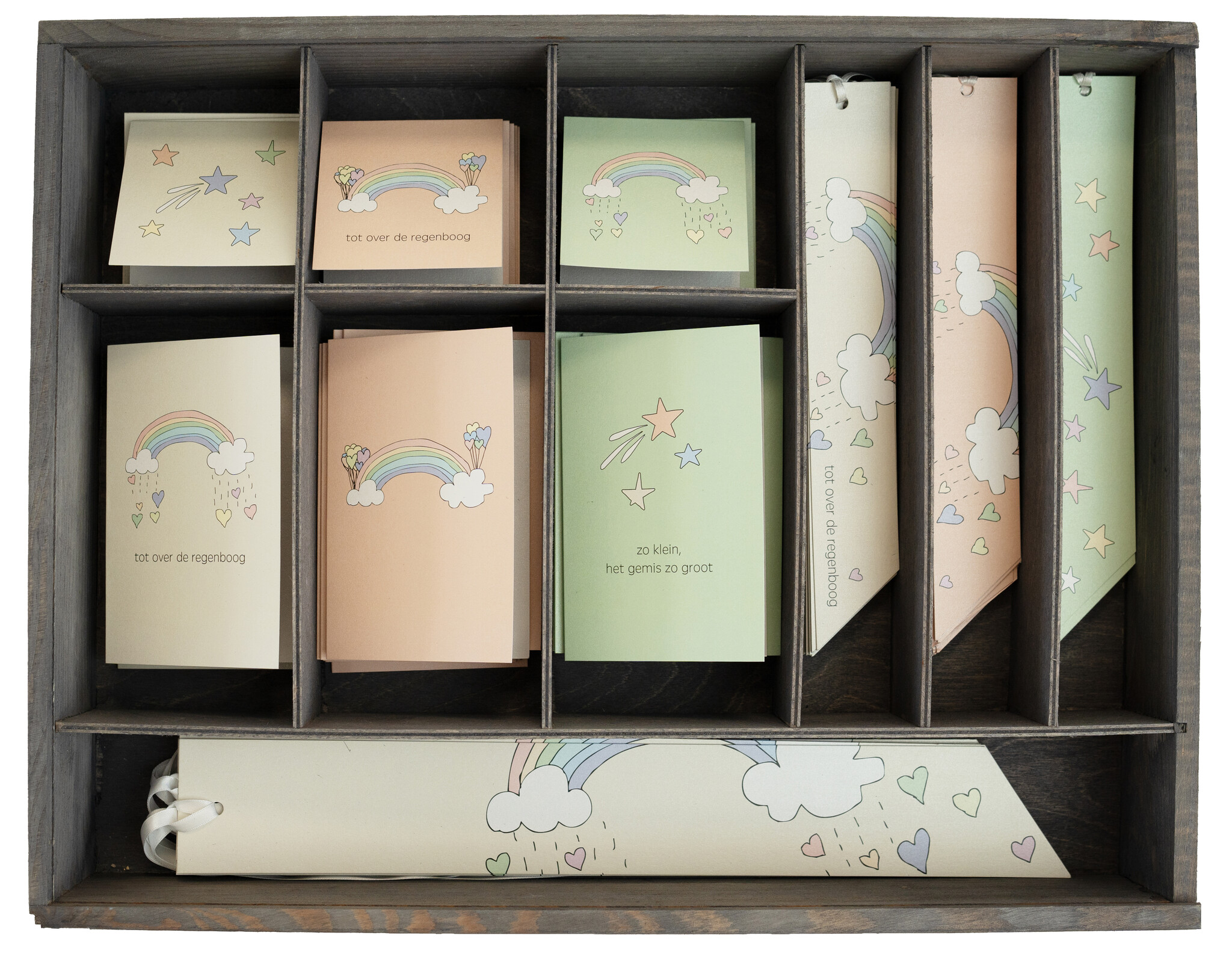 Het kleine quatro formaat is ideaal voor aan een bloem of bloemstukje. Het formaat van het kaartje zorgt ervoor dat de bloem of bloemen de blikvanger blijven en het kaartje een bescheiden drager is van de persoonlijke boodschap. De kaartjes worden na het afscheid vaak bewaard en worden onderdeel van die blijvende herinnering.