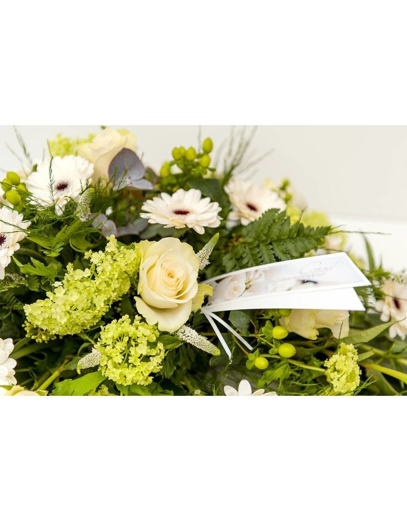 Dit model van de ribbon is de meest gekozen vorm uit onze collectie. Qua formaat bijzonder geschikt aan een bescheiden rouwboeket. Mooi vormgegeven waarbij de tekst ook op redelijke afstand makkelijk te lezen is. In 'schaarvorm' gepositioneerd is ook de persoonlijke, zelf geschreven tekst aan de binnenkant heel goed leesbaar.
