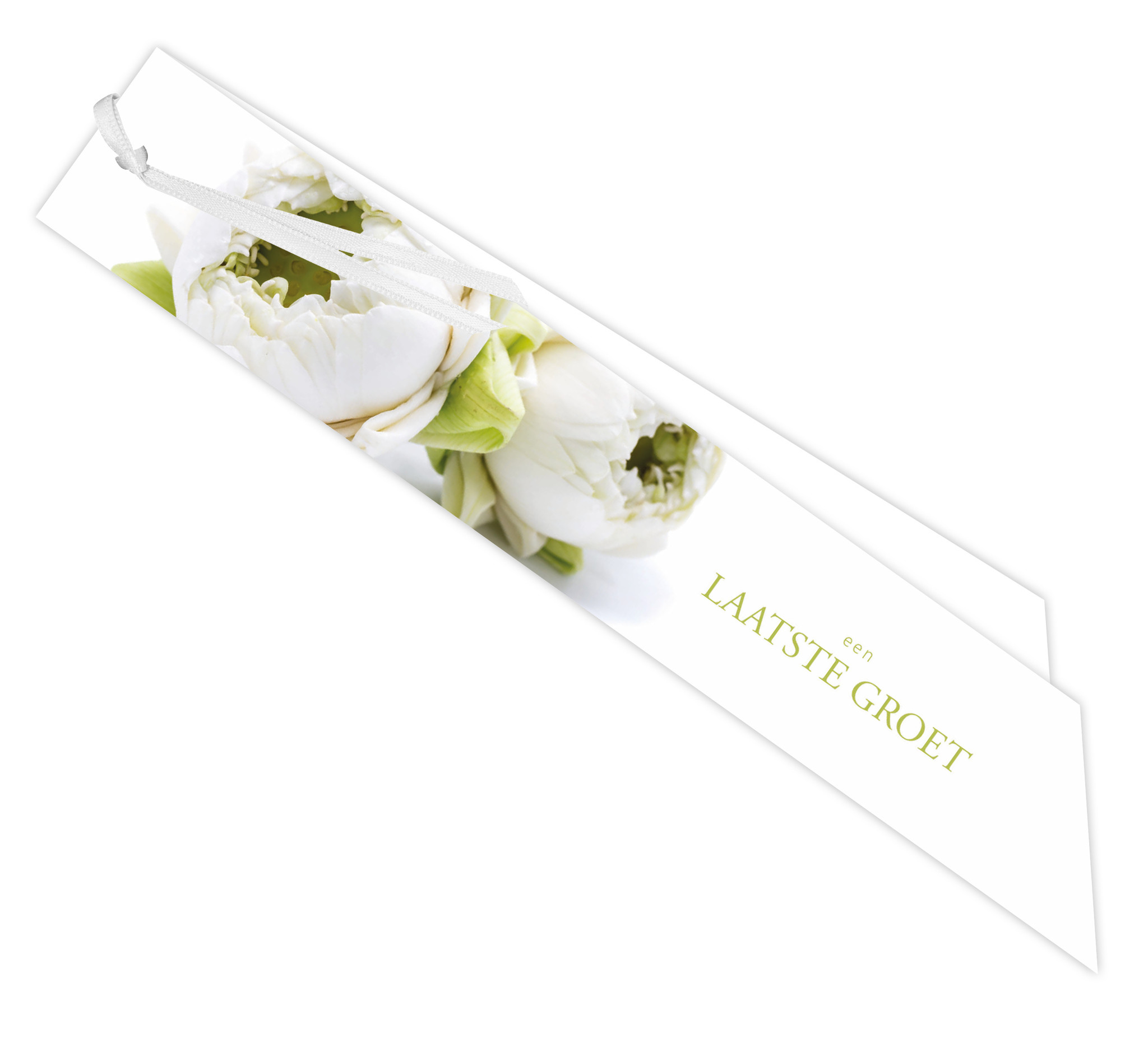 Onze condoléance collectie is met zorg samengesteld en bestaat uit 4 uitvoeringen: een quatro kaartje, een groot formaat kaart, een ribbon kaart en een big ribbon kaart. Alle kaarten zijn dubbel uitgevoerd voor een persoonlijke tekst aan de binnenkant. De dubbele uitvoering bij de ribbon en de big ribbon is door middel van een lintje aan elkaar vastgemaakt. De kaarten zijn bedoeld om aan een rouwboeket/rouwkrans of aan een enkele bloem te bevestigen om zo de nabestaanden te laten weten met hen mee te leven.
