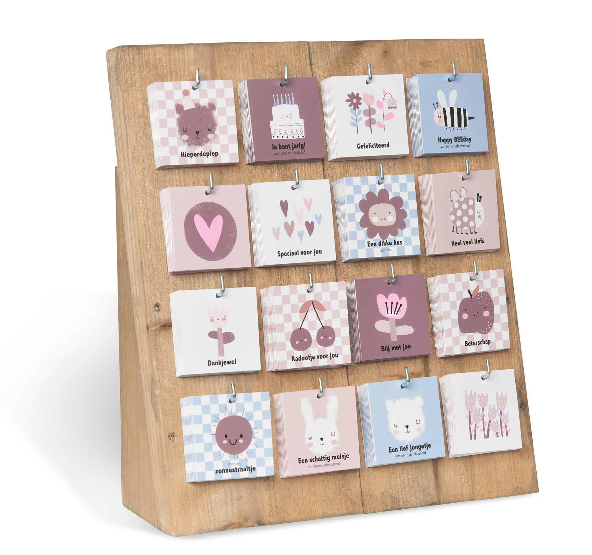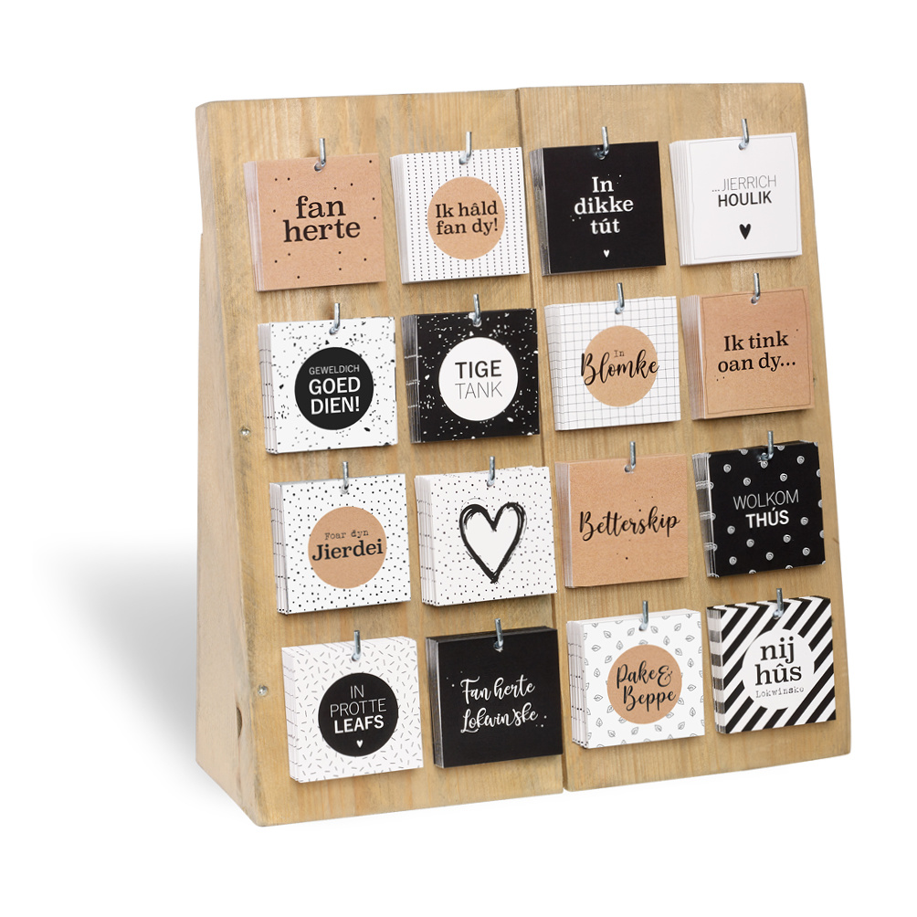Een mooi formaat 16-haaks toonbankdisplay met een afmeting van L38 x B15 x H40 cm. Deze display is geschikt voor onze collecties quatro kadokaartjes.
