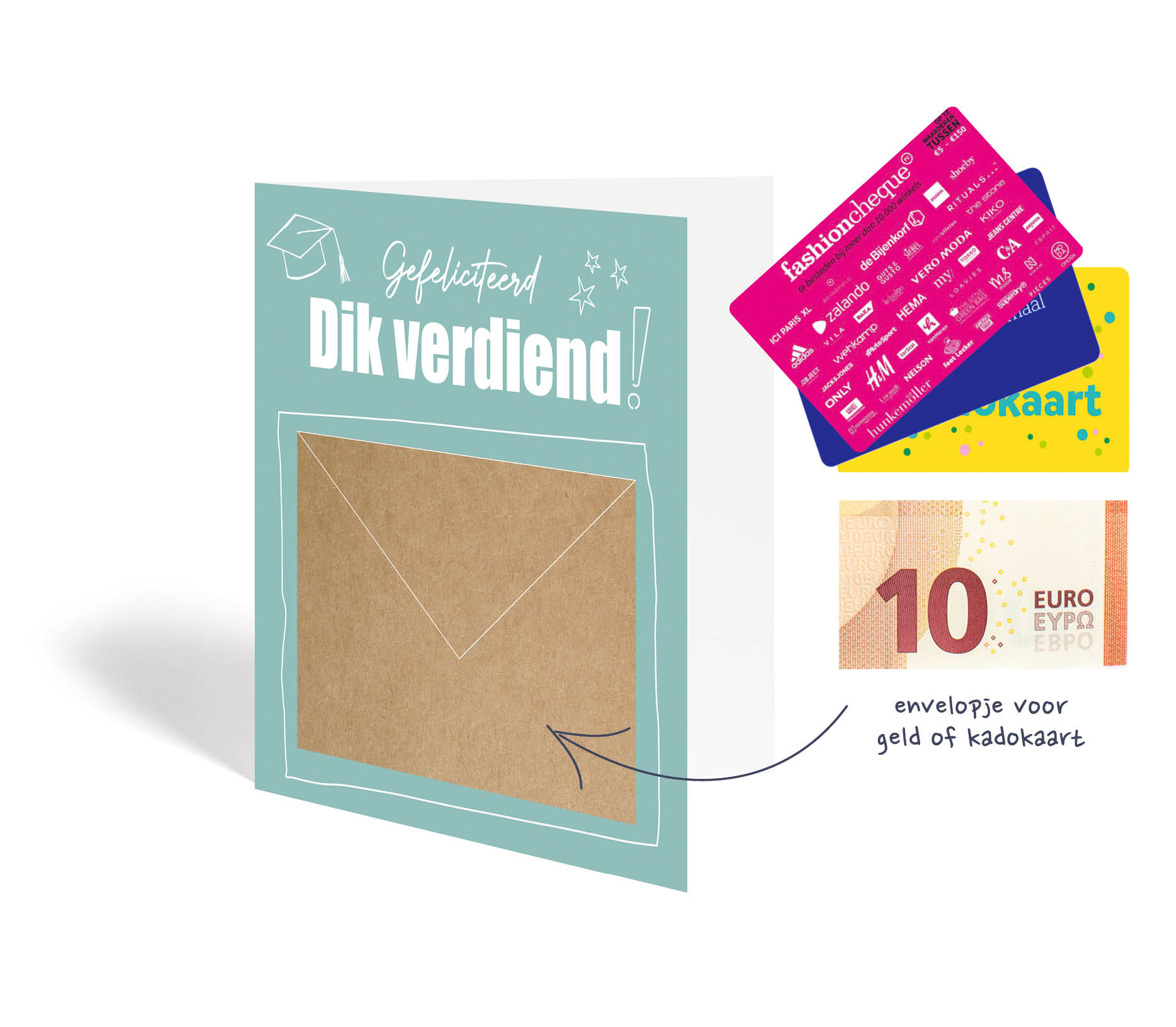 Geslaagd wenskaart met envelopje voor geld of een kadokaart!