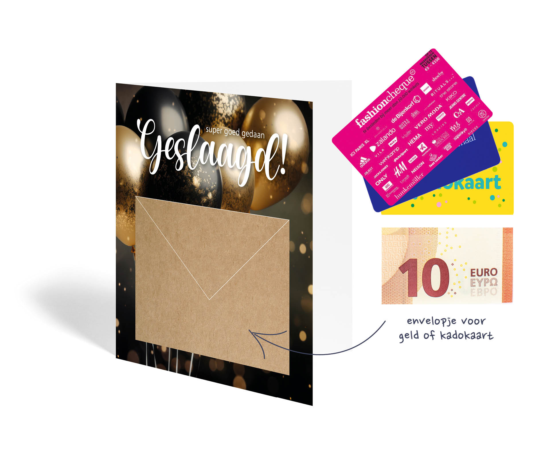 Geslaagd wenskaart met envelopje voor geld of een kadokaart!