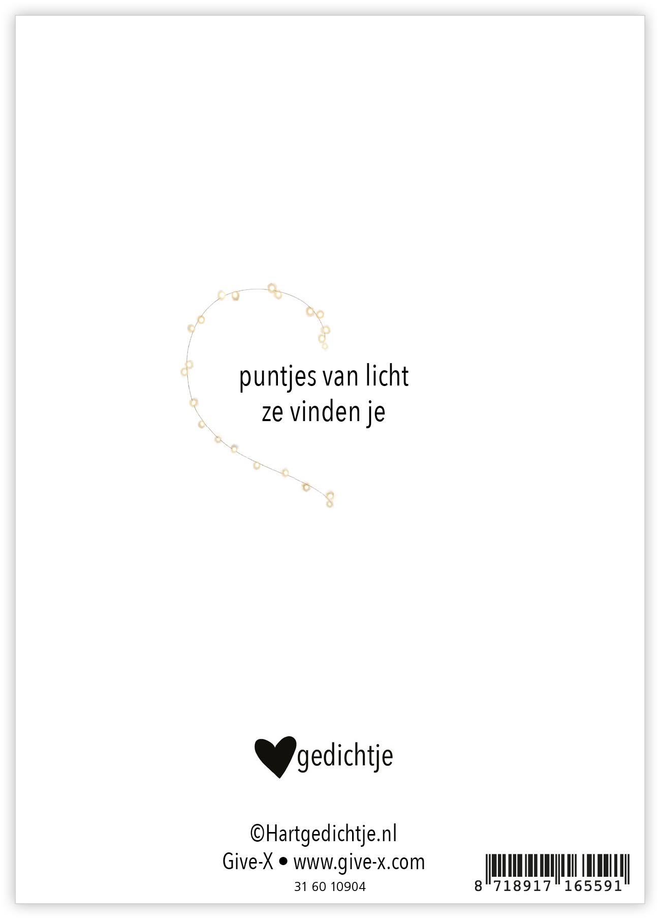 Puntjes van licht ze vinden je. In deze serie zitten 35 Puntjes van Licht. Het zijn dubbele kaarten inclusief kraft envelop. Op de kaarten staan bemoedigende en inspirerende Hartgedichtjes met eenvoudige illustraties.