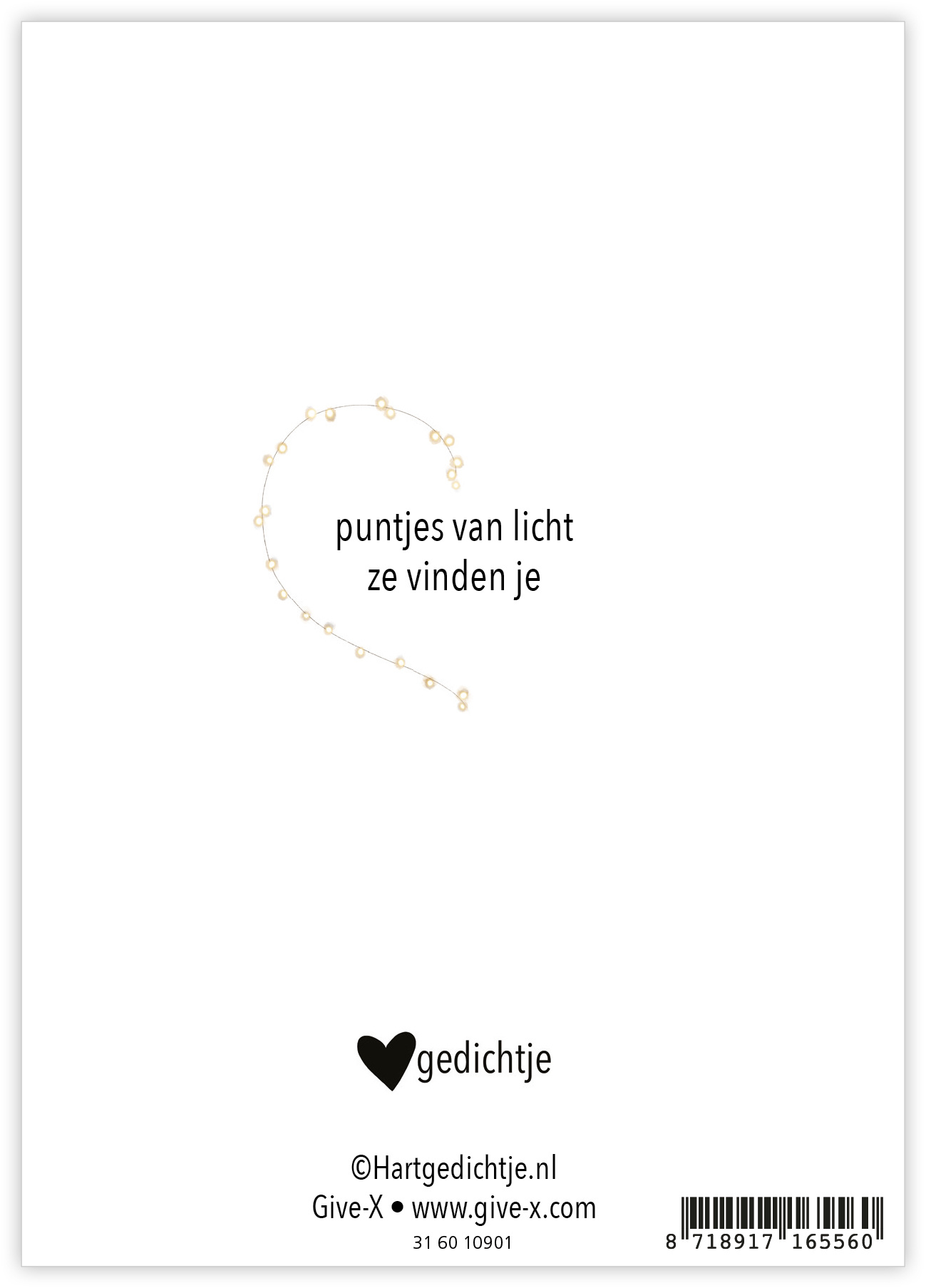 Puntjes van licht ze vinden je. In deze serie zitten 35 Puntjes van Licht. Het zijn dubbele kaarten inclusief kraft envelop. Op de kaarten staan bemoedigende en inspirerende Hartgedichtjes met eenvoudige illustraties.