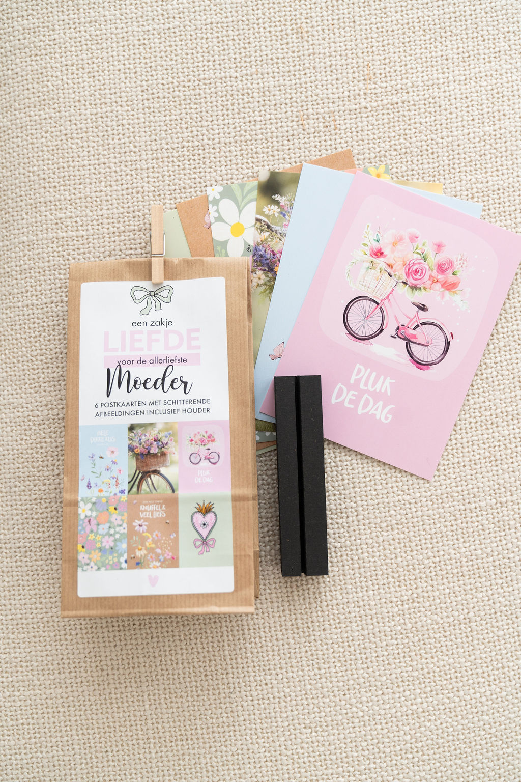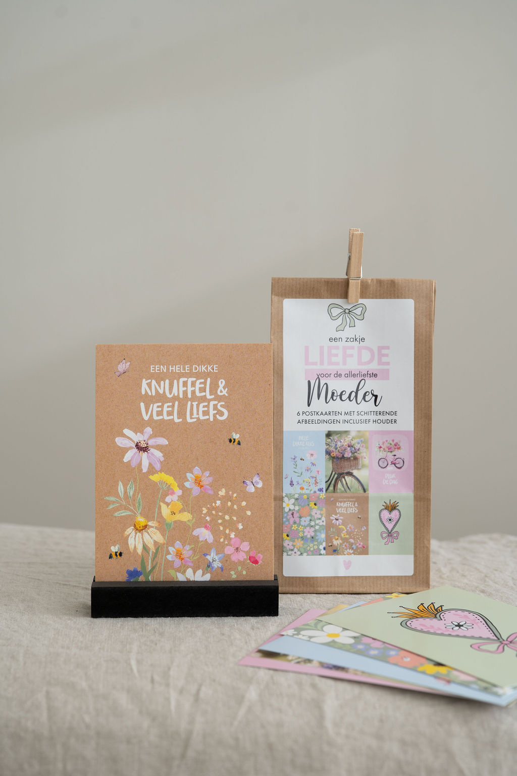 Zakje iefde: 6 postkaarten inclusief houder - 5 stuks